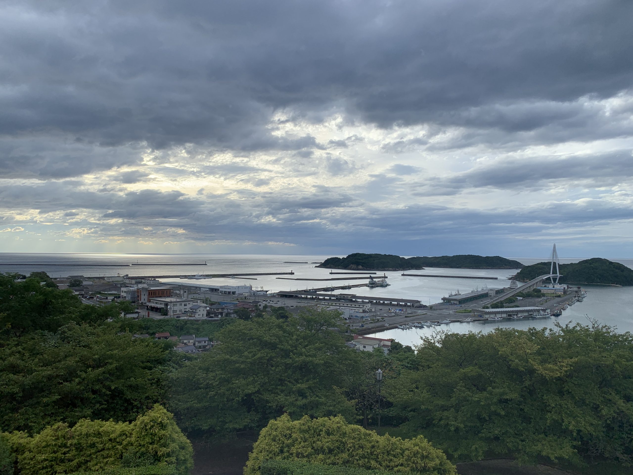 港町から日本海までが見下ろせる素晴らしいロケーションに建つ道の駅「ゆうひパーク浜田」は